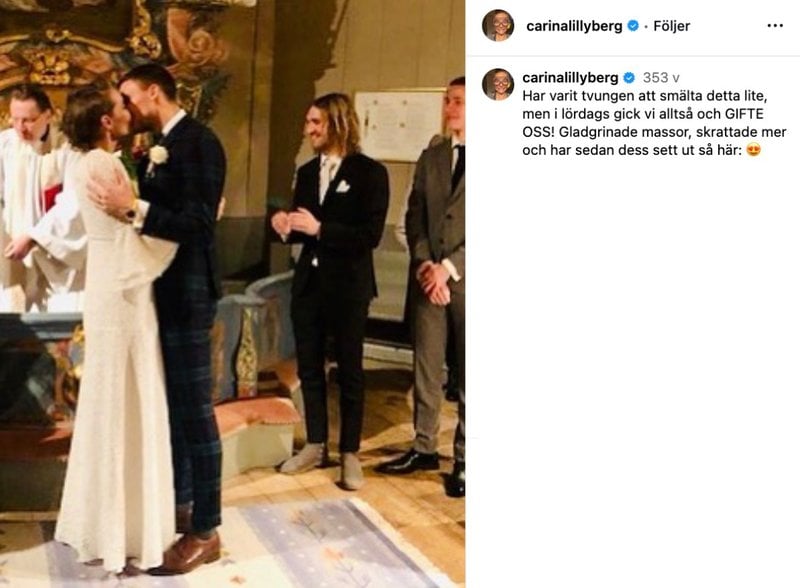 "Har varit tvungen att smälta detta lite, men i lördags gick vi alltså och GIFTE OSS!", skrev Carina Berg på Instagram efter bröllopet i december 2018.