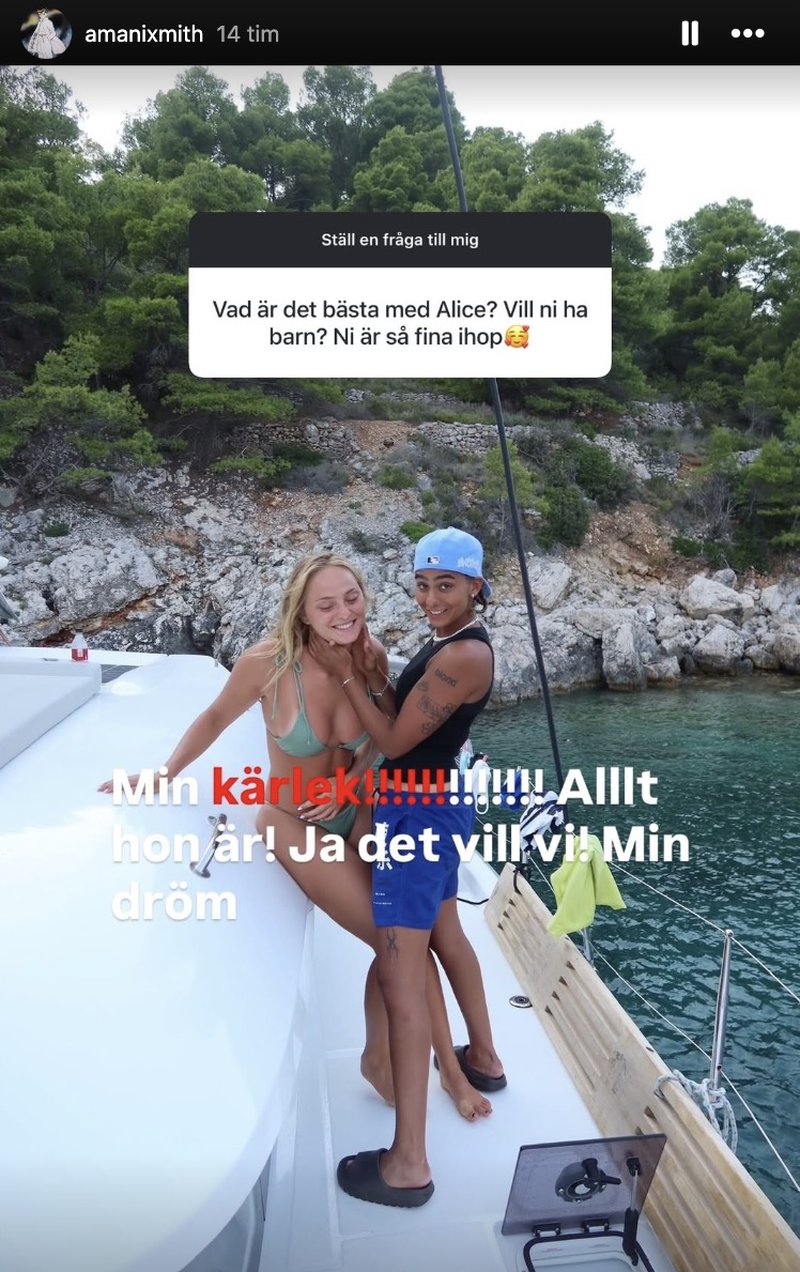 Men nu har även Amani Smith uttryckt vad hon känner i frågan och hur hon ser på framtiden. I en frågestund på Instagram svarar Amani på frågorna vad som är det bästa med Alice samt om de vill ha barn, varpå hon svarar: